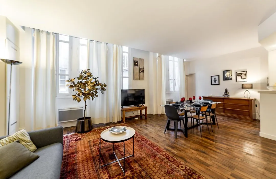 The apartment is nestled in 1st arr. with Hausmann-era boulevards and parks such as the Tuileries and the 17th-century Palais Royal, relatively close to the municipal Museum of Fine Arts of Lyon. The 55 m² accommodation is 700 metres from the bustling 1 - hectare park "Chartreux Garden" and 200 metres from Montee de la Grande Cote Street.